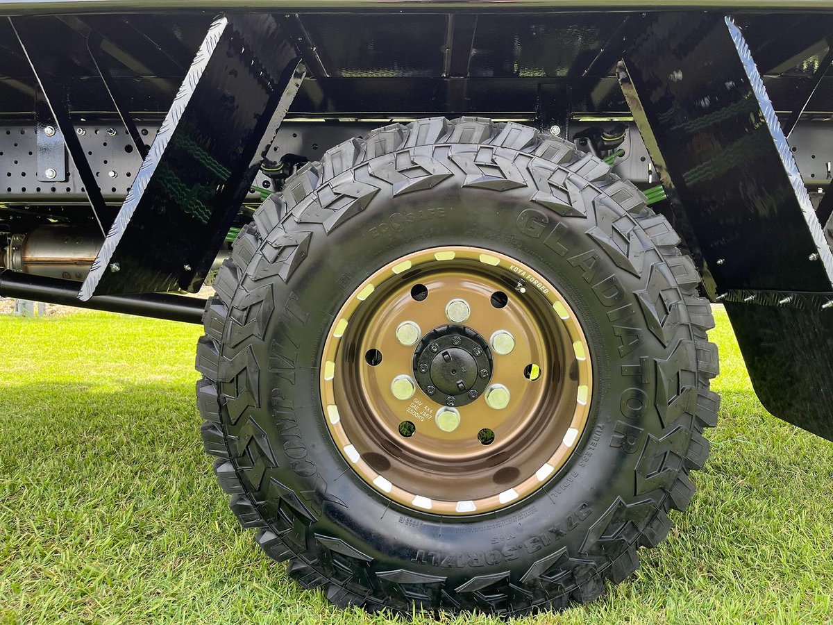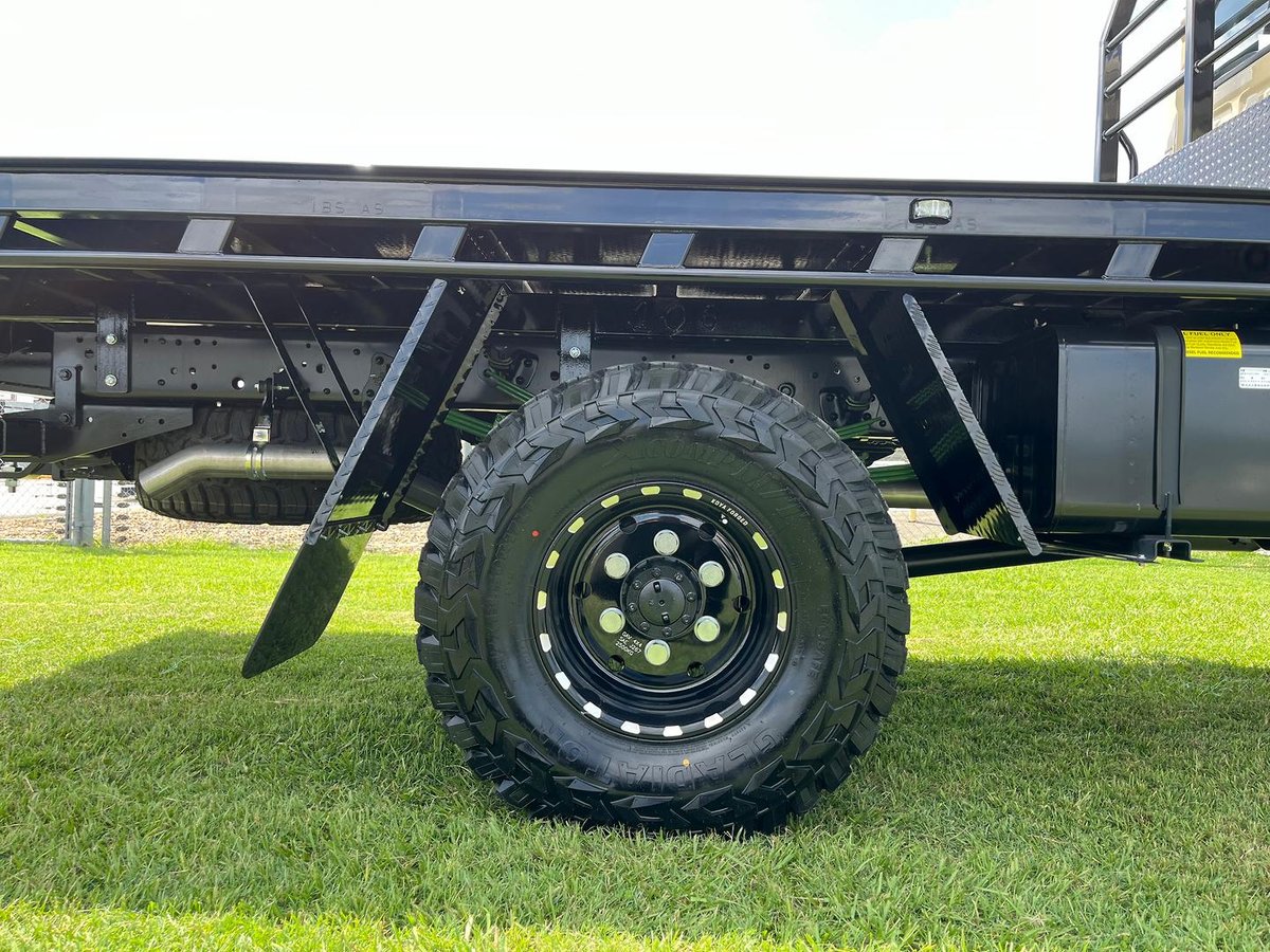 GVM 7500kg or 7460kg, LR Licence, High / Low Range, Super single 37x13.5r17 MT, or 37x13.5 AT, 37x12.5R17 RT or 35 x 12.5 R17 RT or 285/70R19.5 tyre options. Upgraded Front Parabolic Leaf springs 50mm lift, upgraded Rear leaf springs 50mm lift, Heavy duty long travel shocks, Black alloy winch compatible bull bar, 4.5 / 3.5 tonne tow bar.